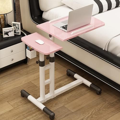 Adjustable Height Over Bed Table Laptop Computer Workstation Stand on Wheels for Home Working Dining