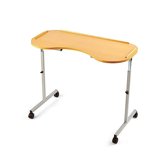 Adjustable Overbed Table on Wheels, Rolling Base Divan Desk, Portable Over Chair Hospital Bed Table (Wood+)
