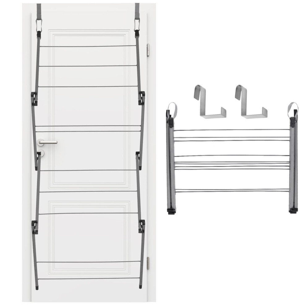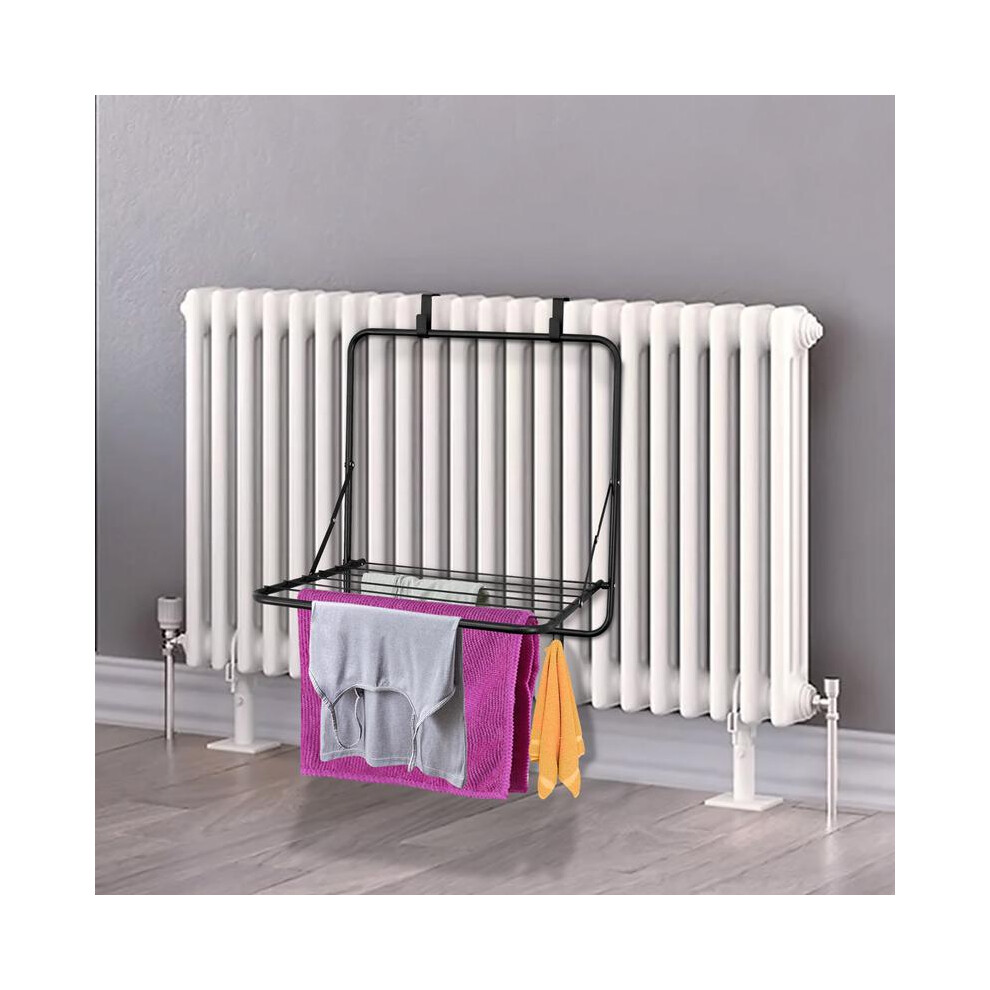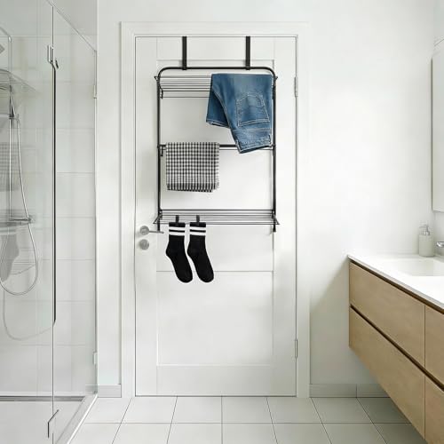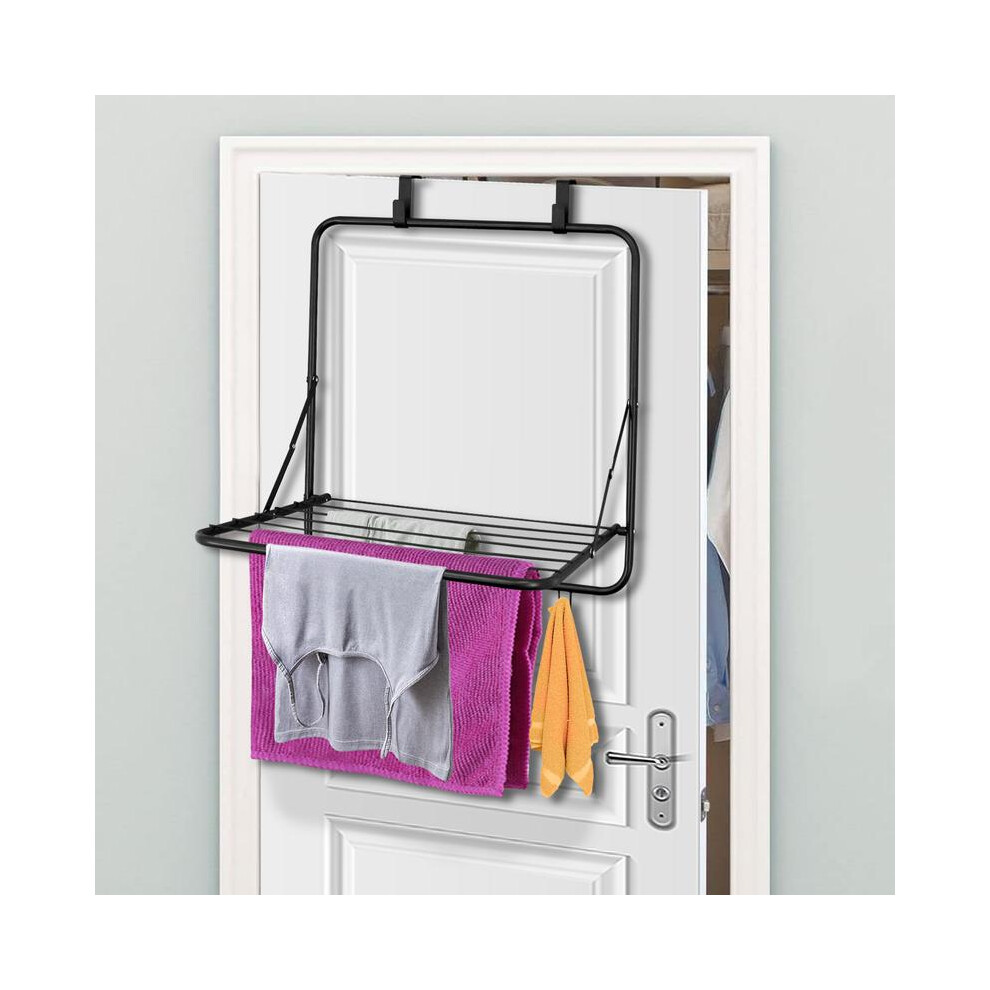 (Default) Over the Door Clothes Airer Foldable Drying Rack, Hangs Over the Door Space Saving, Black Clothes Drying Rack, Collapsible and Lightweight