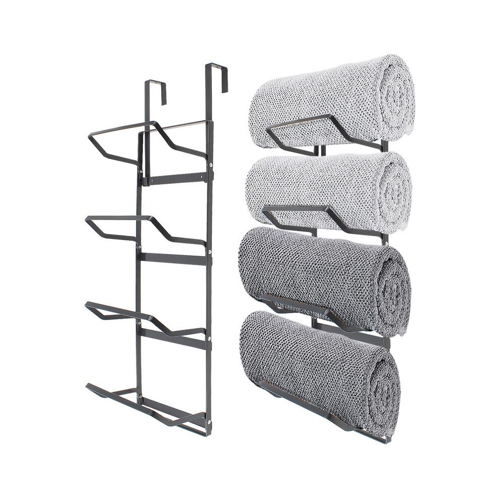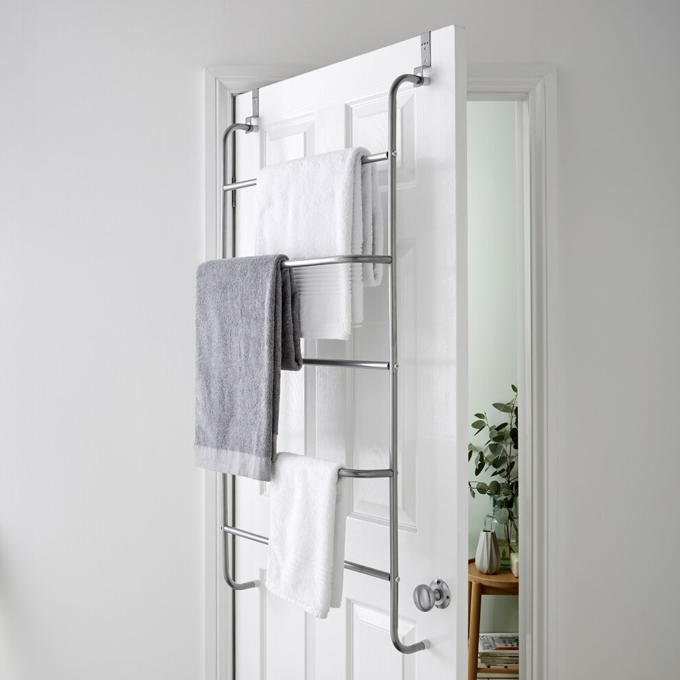 (Default) 4 Tier Metal Towel Rail Rack Wall Mounted or Over The Door - Hanging Towel Holder Airer Storage Hangable Organiser