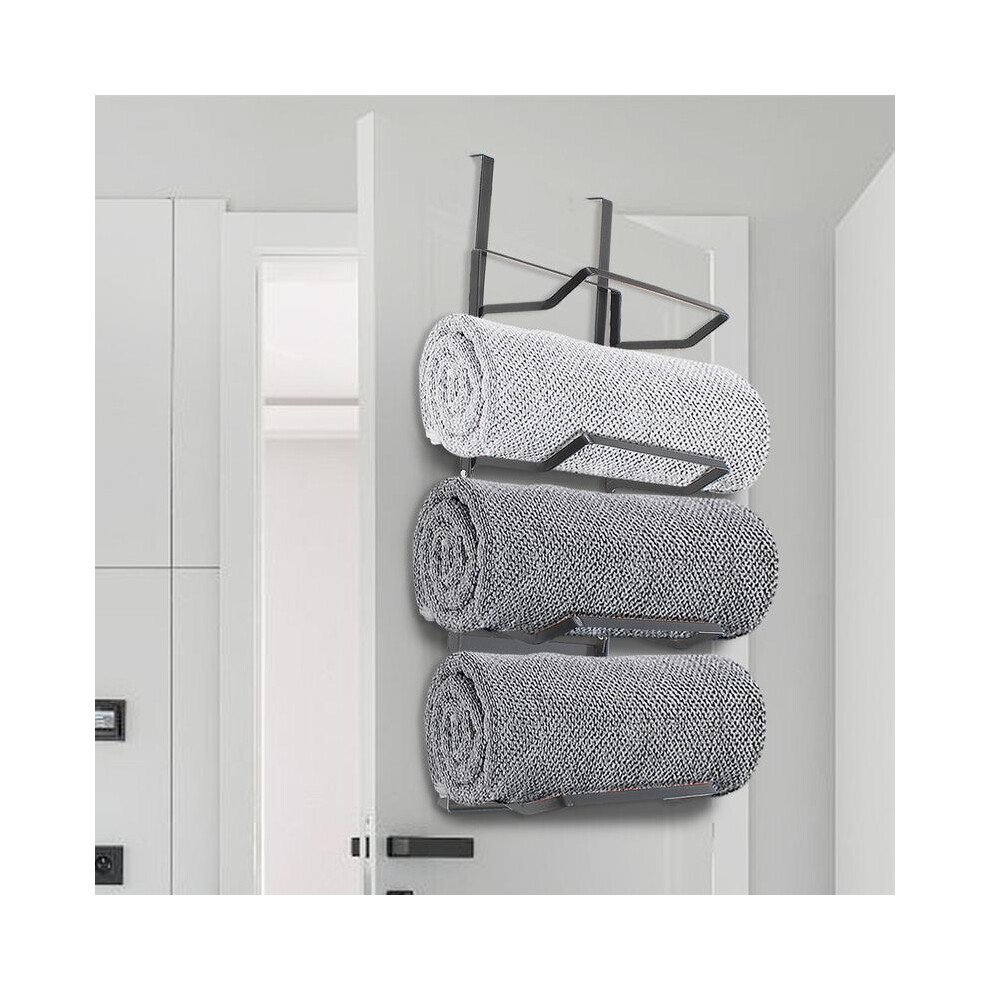 Towel Rail Black Over Door 3 Tier Towel Hanging Rail Clothes Rack Holder Airer