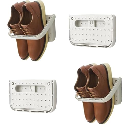 WKAYsIV Wall Mounted Shoes Rack Shoe Holder Foldable Campervan Storage Hanging Shelf Door Shoes Hangers for Entryway Over the Door Shoe Hangers,Pack of 4 (White)