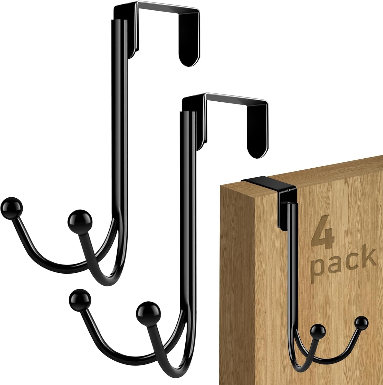 4 Pack over Door Hook, over Door Hangers, Sturdy Door Hooks for Hanging Coats, T