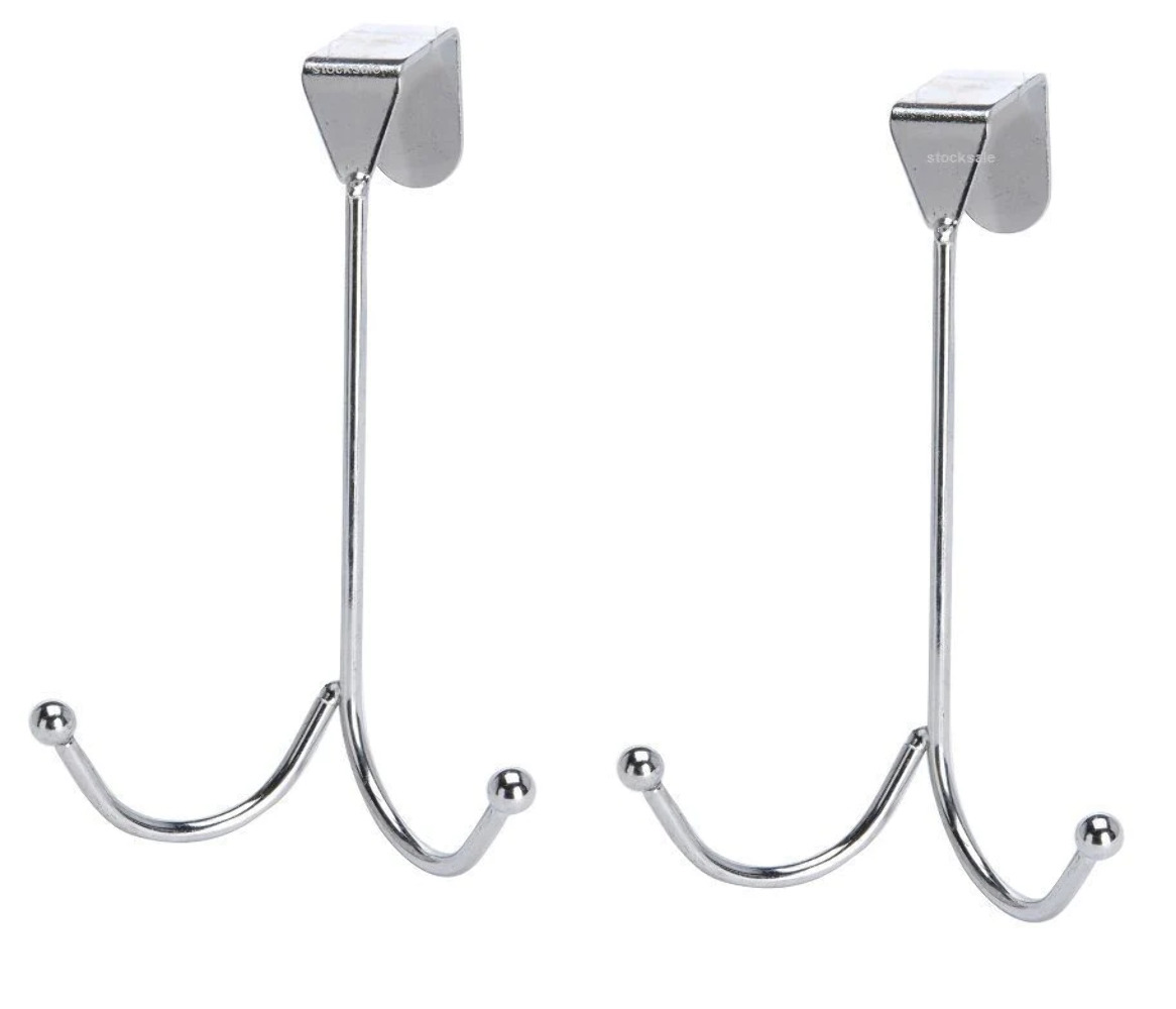 2 x STRONG OVER THE DOOR HOOKS HANGERS CLOTHES COAT RACK HANGER CHROME