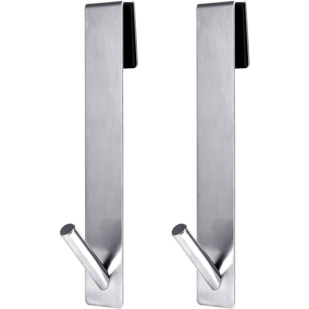 2x Over Door Hook Hangers Stainless Steel Kitchen Bathroom Cupboard Drawer Hooks