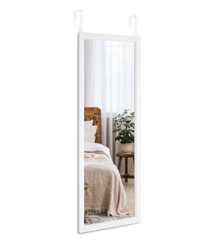 Dripex Over Door Mirror Full Length, Wall Mounted Mirror Door Hung Mirror for Bathroom/Bedroom/Wardrobe - Toughened Glass, White