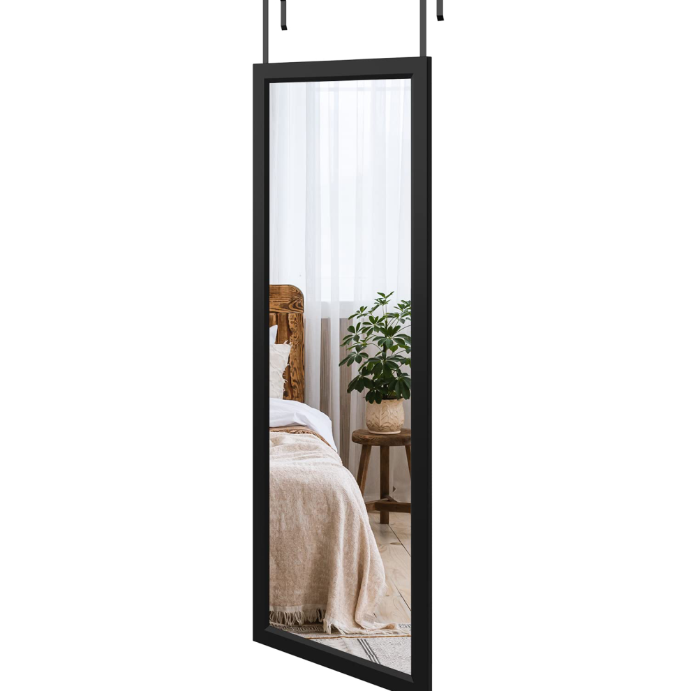 122x35 CM Over The Door Mirror with Hanger Black Aluminum Alloy Frame Full Leng