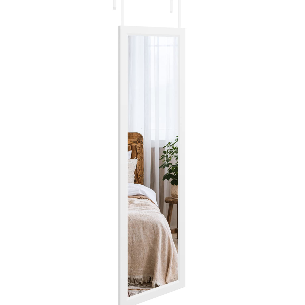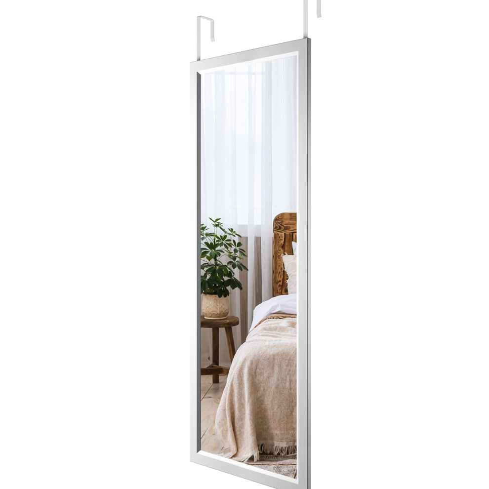 122x35 CM Over The Door Mirror with Hanger White Aluminum Alloy Frame Full Leng