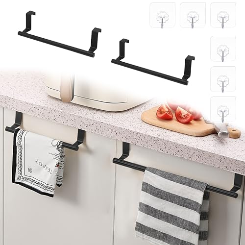 2 Pack Over The Door Towel Rail, Bathroom Kitchen Cabinet Towel Rag Rack Shelf Hanger, Towel Holder for Cupboard Drawer Cabinet, Towel Bar Holder No Drilling