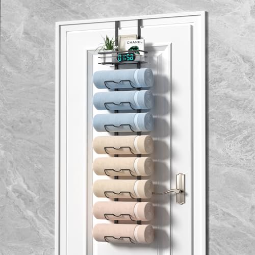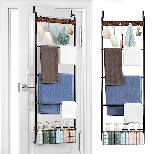 Xstydes 9-Tier Over The Door Towel Rack,Towel Racks for Bathroom, Metal Towel Holder with Storage Basket,Towel Storage for Small Bathroom,Towel Rack for Rolled Towels,Black