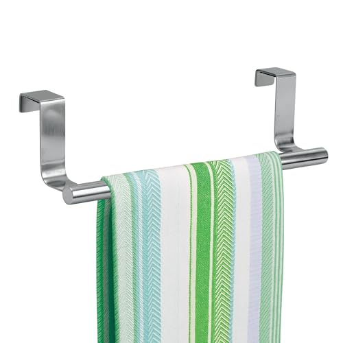 mDesign Steel Over Door Curved Towel Bar Storage, Hanger for Cabinet or Cupboard, Holder Rack for Kitchen, Bathroom - Holds Hand/Dish Towels, Washcloths - Spira Collection - 2 Pack - Satin
