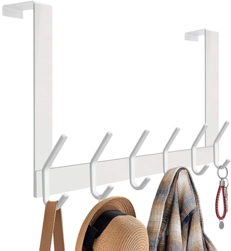 Yctze Over The Door Hooks PS Carbon Steel 6 Hooks Over Door Er Holder Towel Rack with Tracel Adhesive for Hroom Bedroom Kitchen - Space Saving Over The Door Towel Holder for Organizing