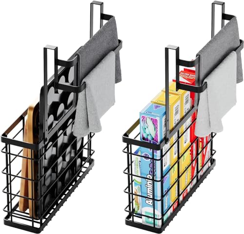 LIVOD Cabinet Door Organizer, Over The Cabinet Door Organizer with Double Towel Bars, Cutting Board Organizer with Towel Holder, Kitchen Cabinet Organier for Pantry, Baking Sheet, Plastic Wrap, Black