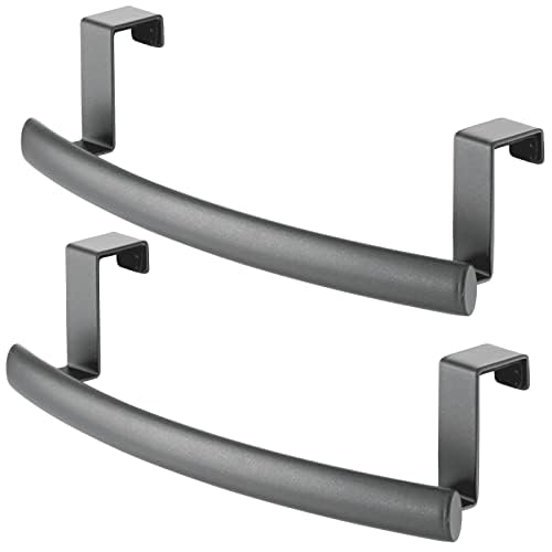 mDesign Steel Over Door Curved Towel Bar Storage, Hanger for Cabinet or Cupboard, Holder Rack for Kitchen, Bathroom - Holds Hand/Dish Towels, Washcloths - Spira Collection - 2 Pack - Graphite Gray