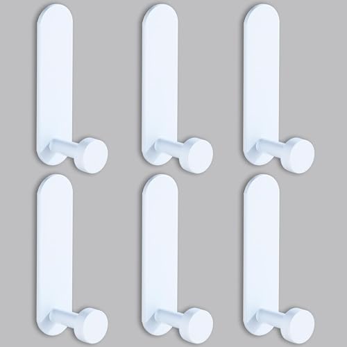 JS Stick on Hooks Sticky Towel Hooks Holder Self Adhesive Hangers Wall Mounted Over Door for Coat Hat Purse in Bathroom Shower Kitchen,White,6 Pack