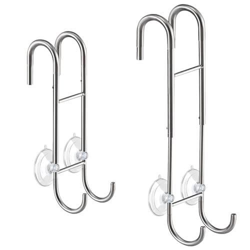 Shower Door Towel Hooks - 9"~13" Length Adjustable Hook for Framed & Frameless Over The Door Glass, Squeegee Holder, Towels Hanger for Bath Suits Rozer Robes Loofahs Shavers, 2-Pack Silver