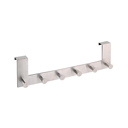 axentia 6 Hook Over Door Hanger, Stainless Steel Coat Robe Hat Clothes Hanger Rack Holder, Bathroom Hooks, Hanging Towel Rack Organiser, approx. 39 x 11 x 5 cm, Silver