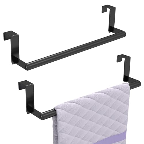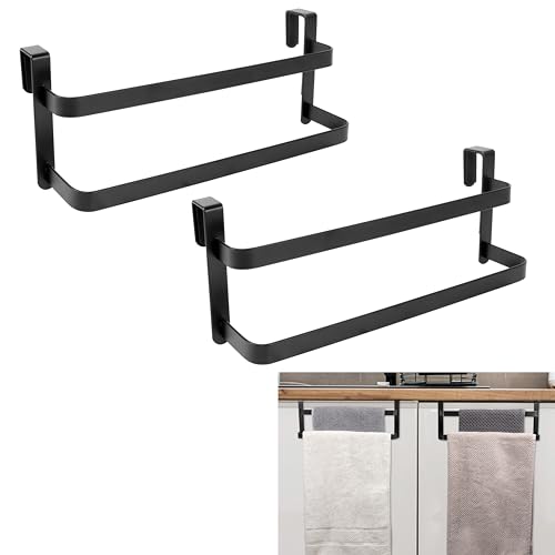 STWWO Over The Door Towel Rack, Kitchen Towel Holder Over Cabinet Door Towel Bar Stainless Steel for Cupboard for Kitchen Dish Towel Holder Hanger, 2 Pack (Black)
