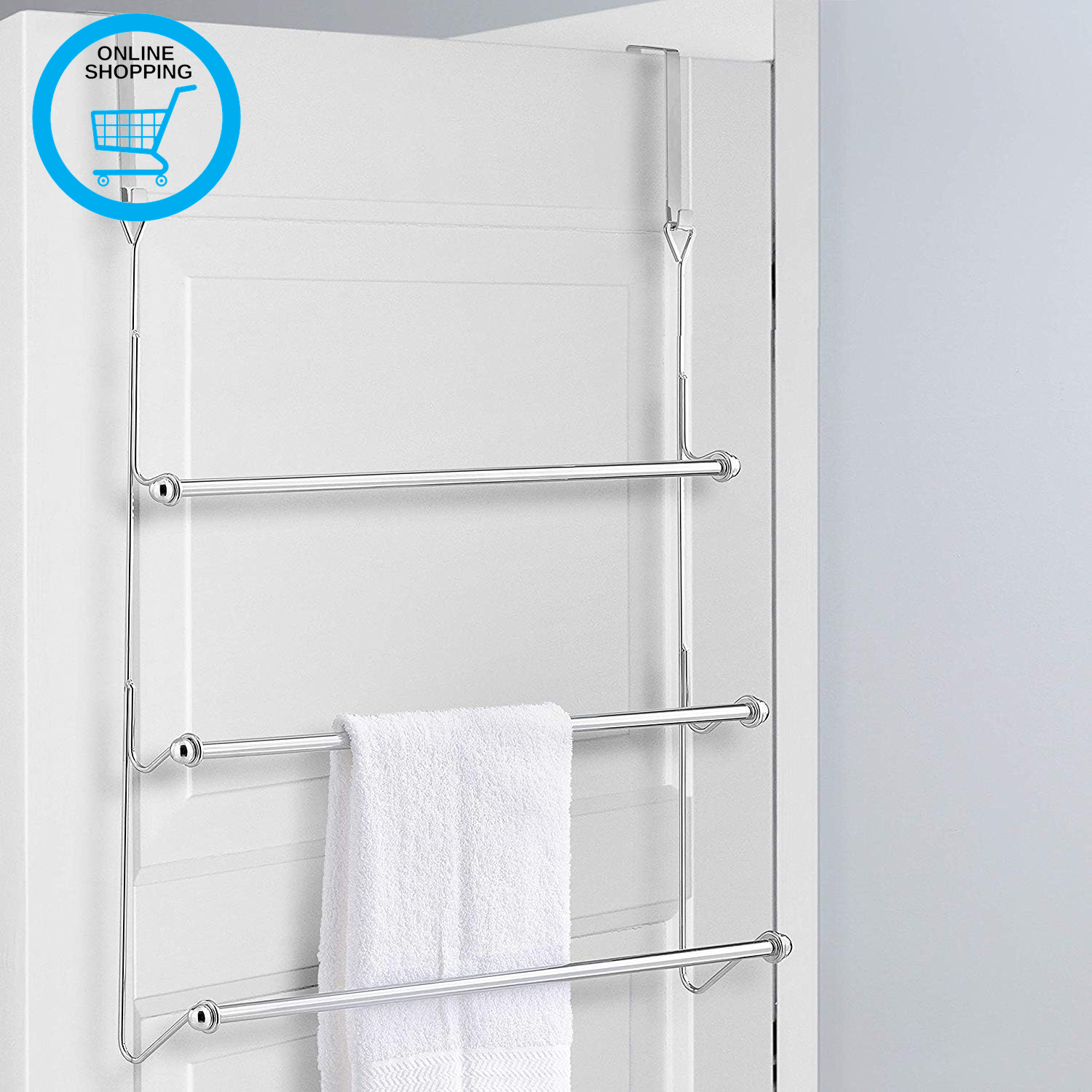 3 Tier Over Door Storage Towel Rail Bathroom Rack Chrome Door Hanging Towel Rail