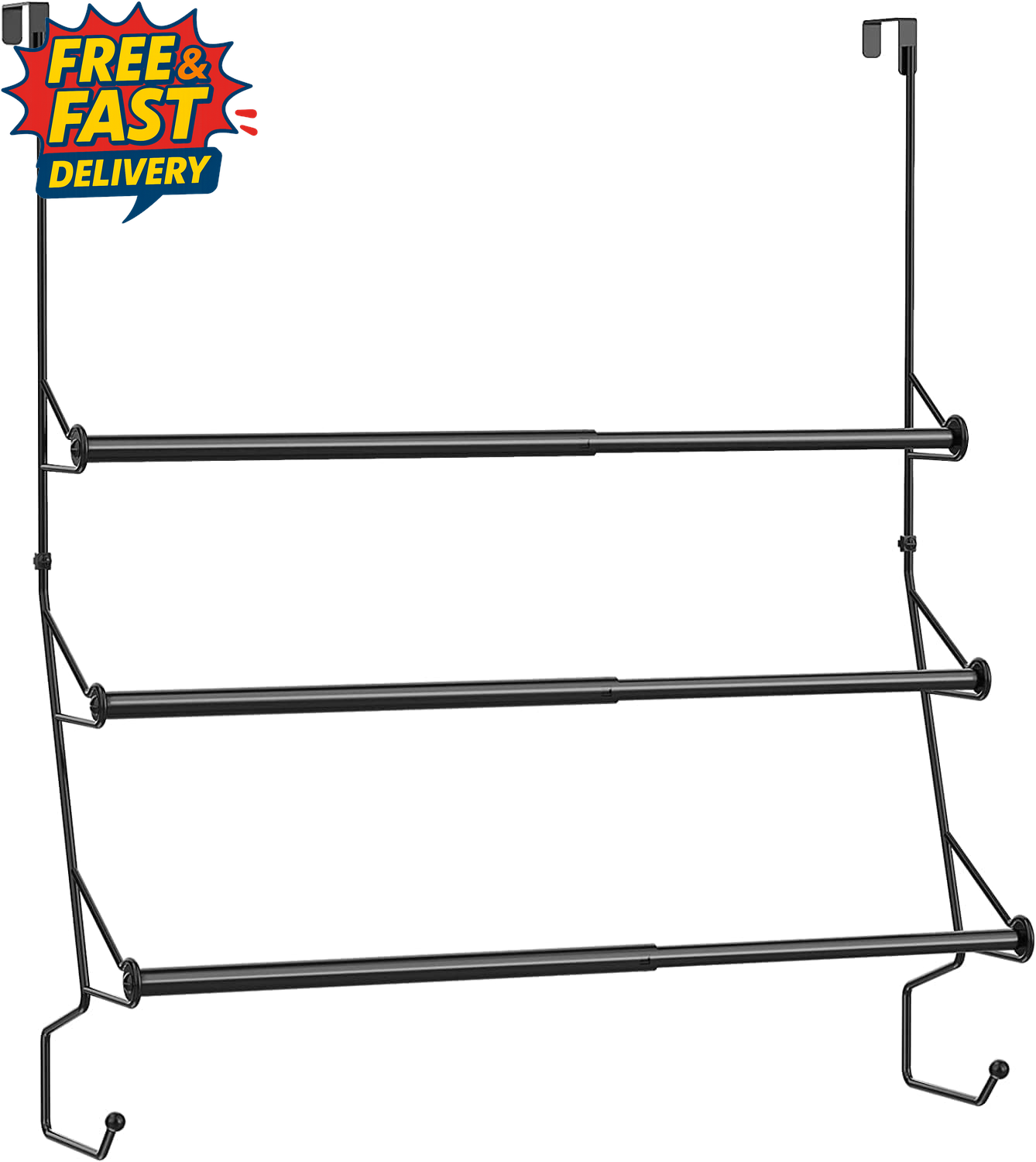 3 Tier over the Door Towel Rail, Hanging Towel Rack for Bathroom, Adjustable Tow