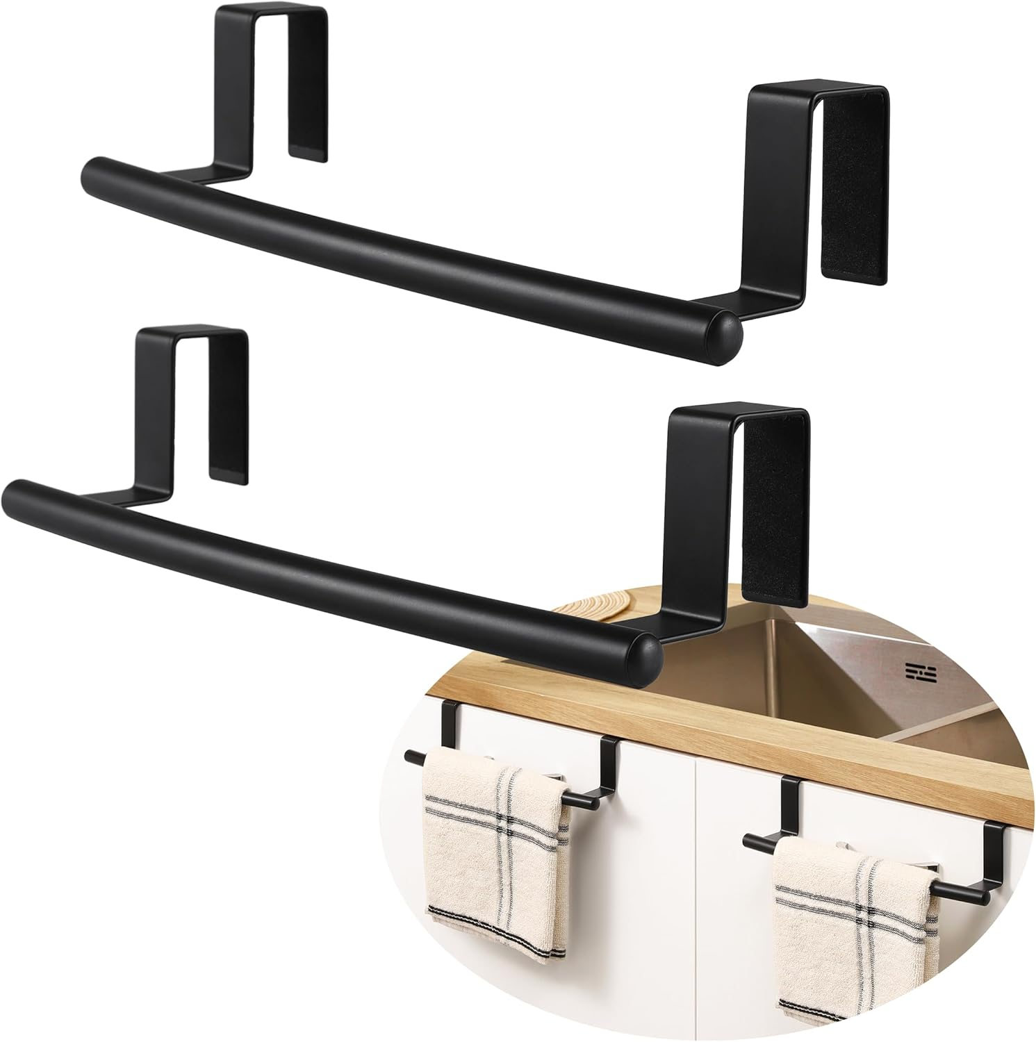 Black Towel Holder, 2 Pack over the Door Towel Rail Stainless Steel Kitchen Tea
