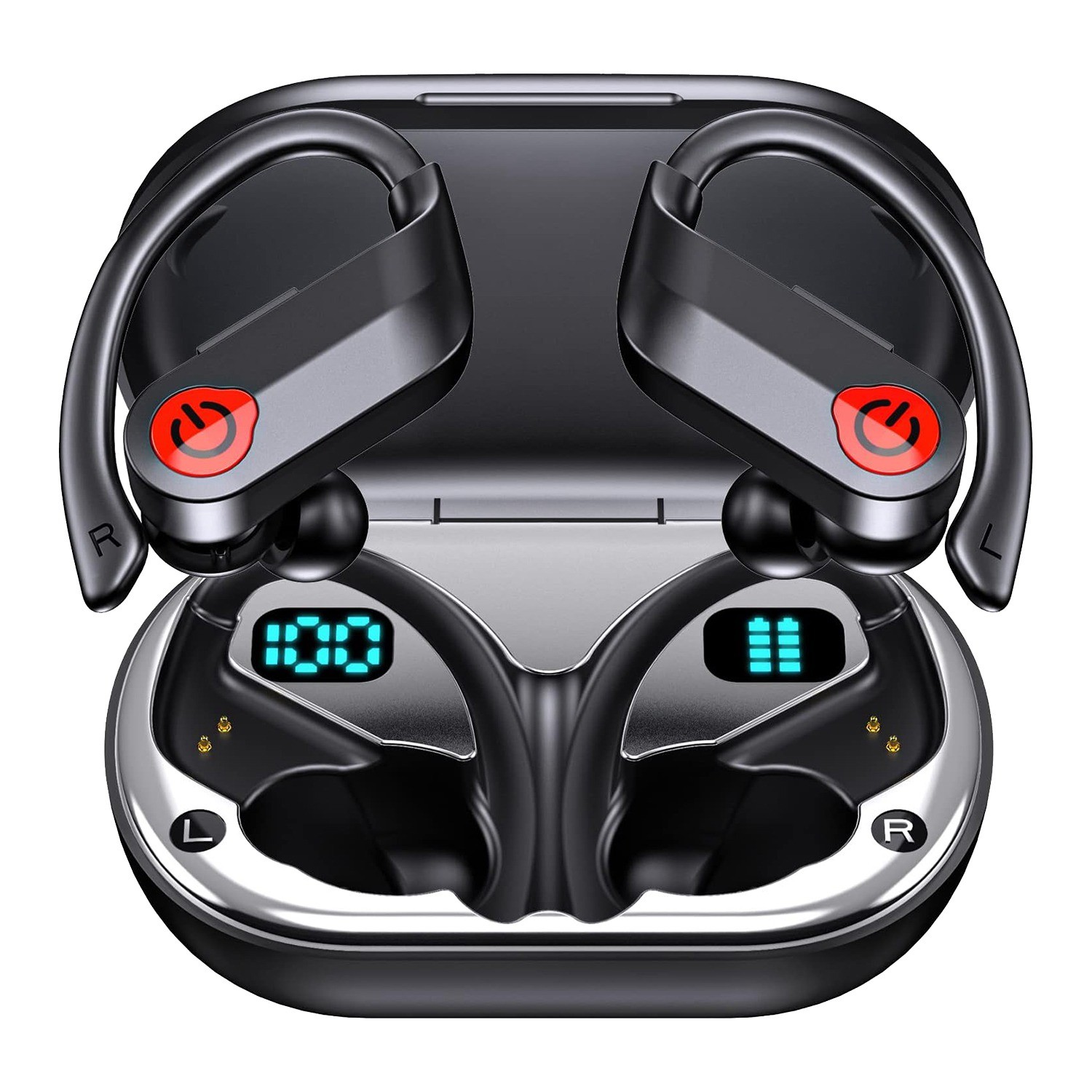 Vinsh Wireless Earbuds Bluetooth Headphones 48 Hours Play Sports with LED Display Over-Ear Built-in Microphone (Black)