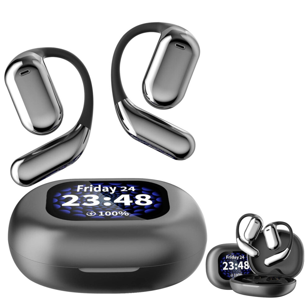 Intelligent Touch Screen Over-Ear Earbuds XP2, True Wireless Open Ear, Bluetooth 5.4, LCD Display, IPX5 Waterproof, Noise Reduction for Fitness,