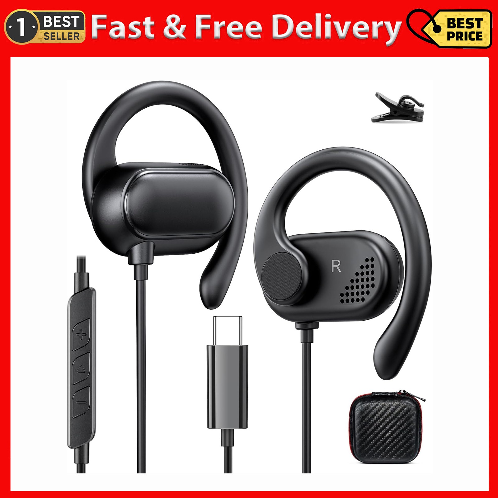 USB C Running Sports Earbud, Type C Headphones Wired Over Ear In Ear Headsets Noise Isolation waterproof Earbuds Enhanced Bass Stereo Earphones with Microphone and Remote for Running Jogging Gym