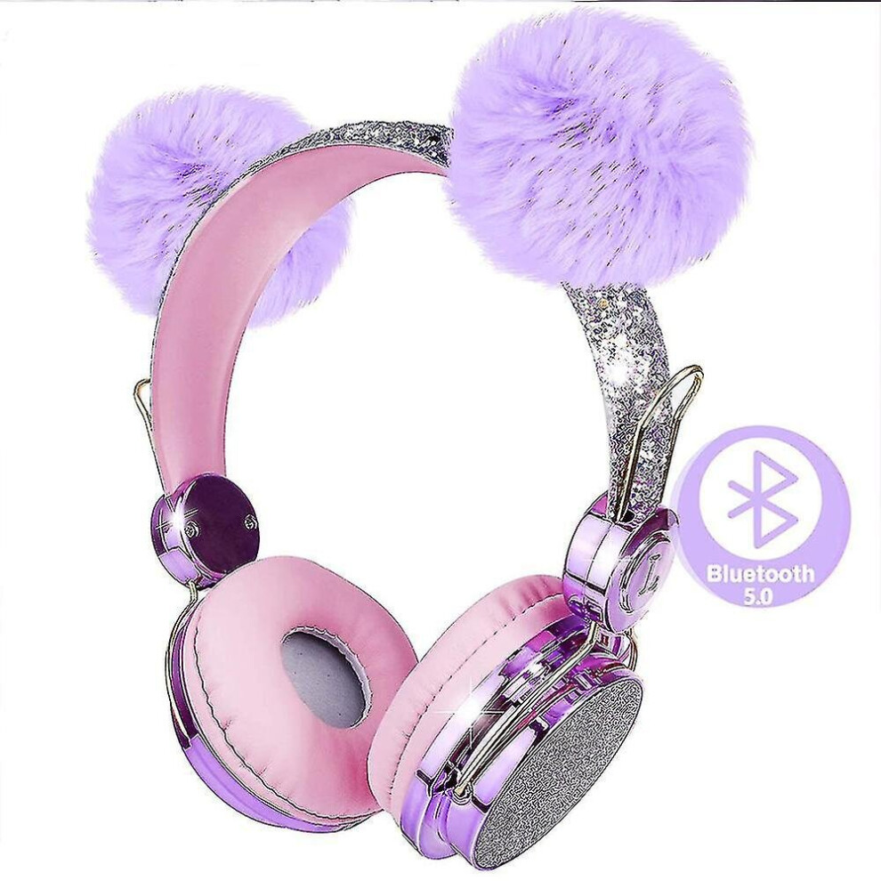 Girls Kids Pom Pom Wireless Bluetooth Over The Head Headphones Headset For Tablet Pc Mobile Phone