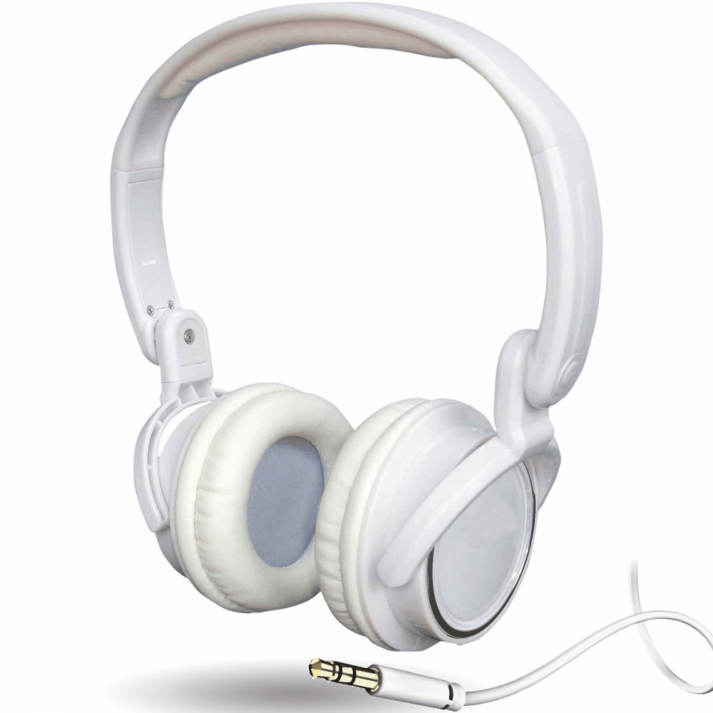 Hi-Fi Stereo Headphones in White, Padded Over Head overear with Gold Jack Plug