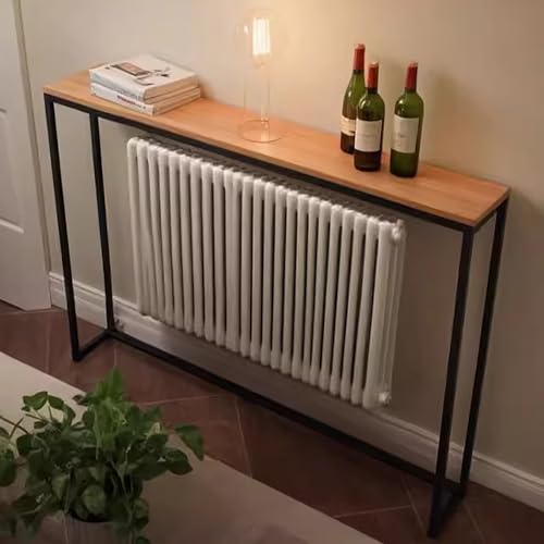 SXKLYRF Wood Radiator Shelf Top, Over Radiator Shelf, Console Table Narrow Sofa Table with Metal Frame for Living Room(100x20x75cm/39x8x29.5in)