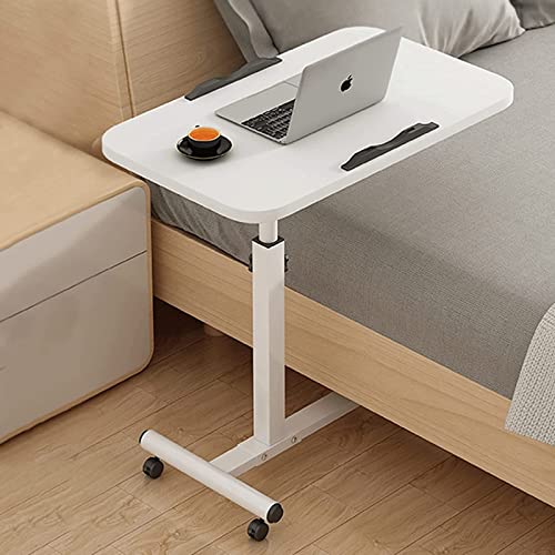 ZYFBD Mobile Overbed Table With Wheels,Portable Over Bed Sofa End Table,Adjustable Height Bedside Laptop Table Hospital Nursing Reading Eating Table (Color : White)