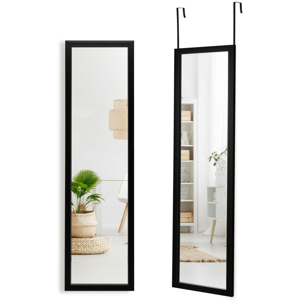 (Black) Over the Door Full Length Mirror Black or White Hanging Bedroom Wardrobe Workout