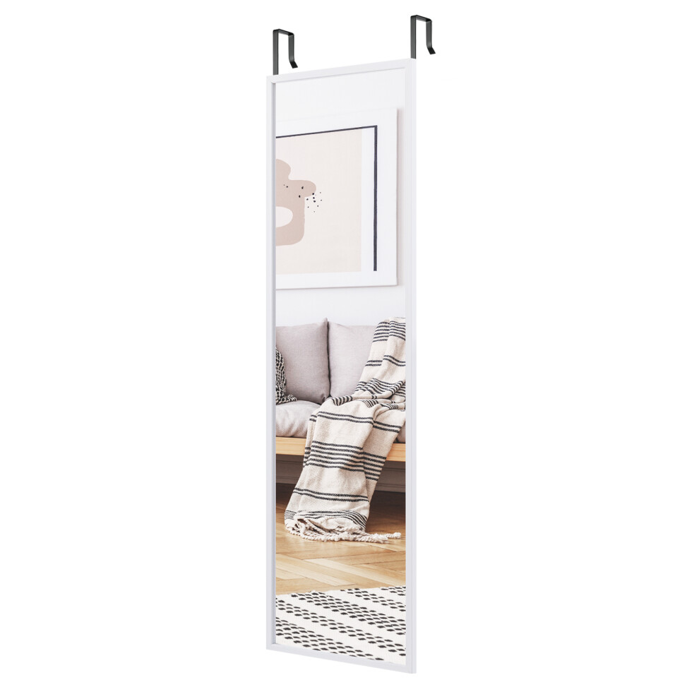 122x35 CM Over The Door Mirror with Hanger White Aluminum Alloy Frame Full Leng