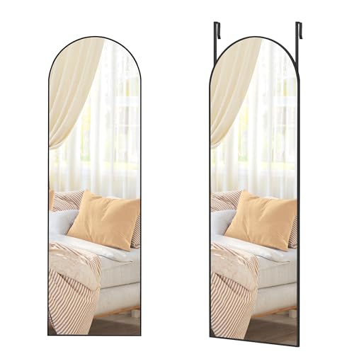 BEVERDY Over The Door Mirror - 16"x50" Full Length Arched Vertical Wall Mirror, Black