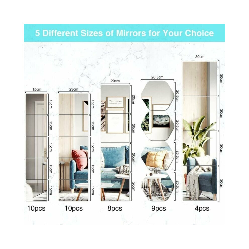 Full Length Wall Mirrors, Full Body 10pcs Acrylic Plexiglass Mirror Wall-Mounted Frameless Mirror Over the Door Large Long Mirror Home Worko