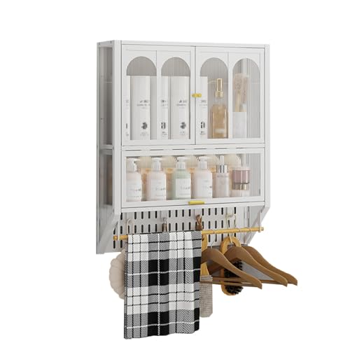 WJKBZQ Bathroom Medicine Cabinet wall Mounted,Transparent Acrylic Door Design, over The Toilet Storage Cabinet with Towel Rack and Adjustable Shelf(White)