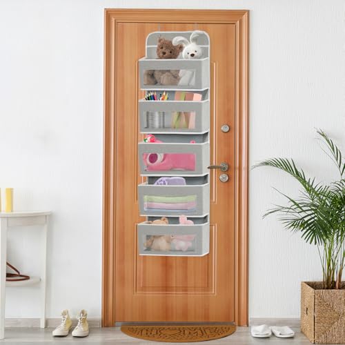 Lifewit Over the Door Storage Organizer, Wardrobe Organiser with Adjustable Metal Hangers, 5 Shelf Hanging shelves Behind Door for Bedroom, Bathroom, Pantry, Nursery, Kitchen, Dorm, Grey