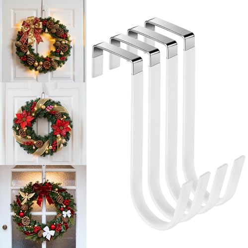 Hotop 15 Inch Wreath Hangers for Front Door Wreath Doors Hangers Steel Material Clothes Towel Hooks Holder Over The Door Hanger Hooks for Christmas Halloween Front Decorations(White,6 Pieces)