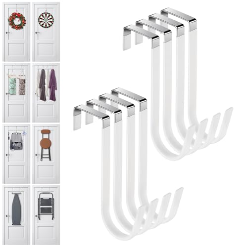 Damita Over The Door Hooks 8 Packs, Over The Door Towel Hanger for Coat, Overdoor Hangers Back of Door Hook, Sturdy Stainless Steel Hooks with Anti-Scratch Rubber Surface for Hanging Coats White