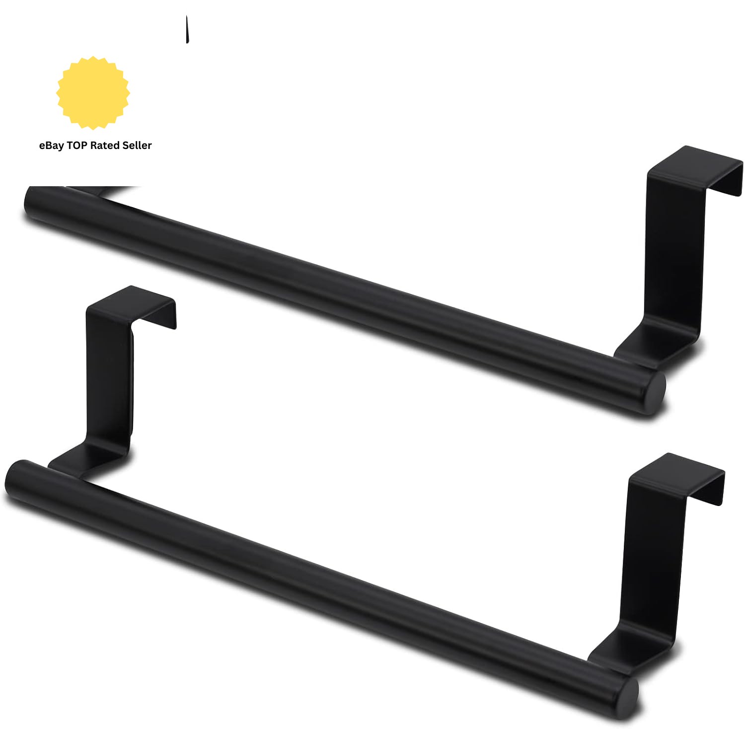 Black Towel Holder, 2 Pack over the Door Towel Rail Stainless Steel Kitchen Tea