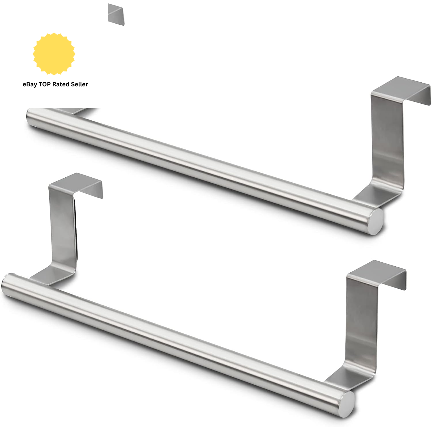 Over the Door Towel Holder Rustproof Stainless Steel Rack NoDrill for Bathroom or Kitchen
