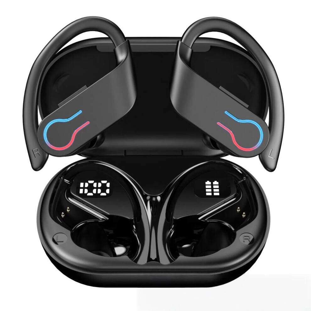 Over The Ear Wireless Earbuds Open-Ear LED Display Noise Reduction Waterproof Black For Running And Workouts 1 Set
