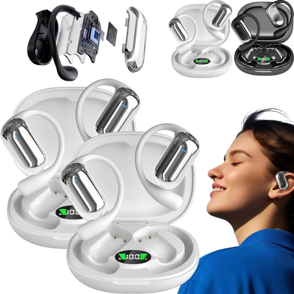 Over The Ear Earbuds Xp2, 2024 New TWS Open Ear with LED Display, Noise Reduction, High Sound Quality, IPX5 Waterproof for Sport (White)