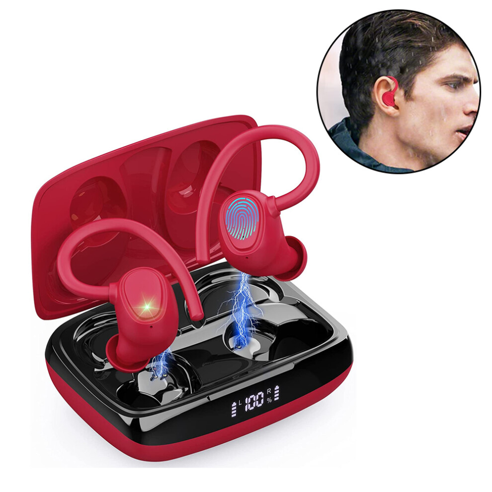 (Red)Wireless Earbuds with Immersive Sound Bluetooth Over The Ear Sport Headphones Stereo Calls Touch Control IPX7 Weaterproof Deep Bass
