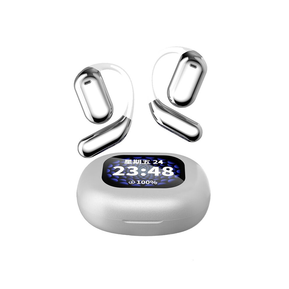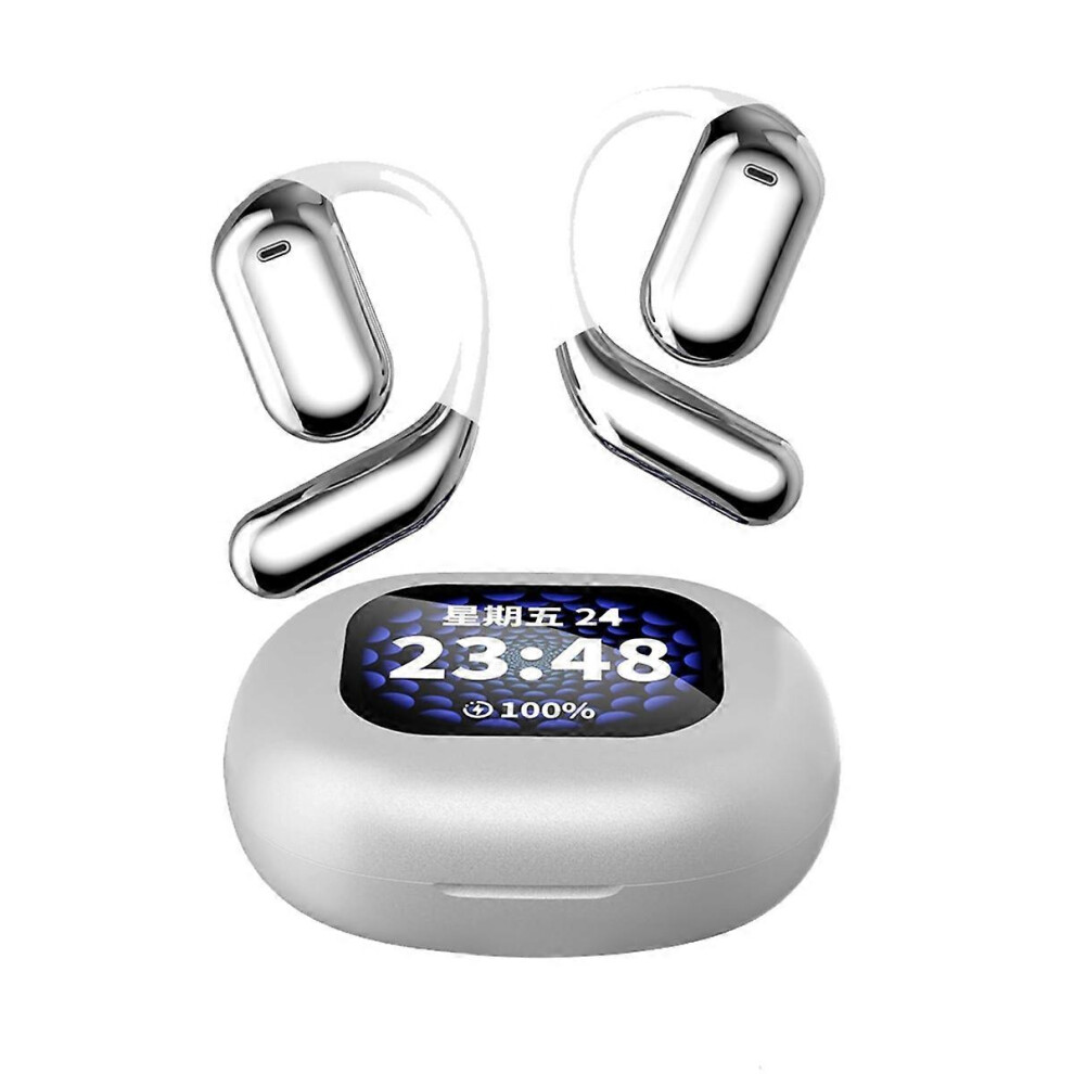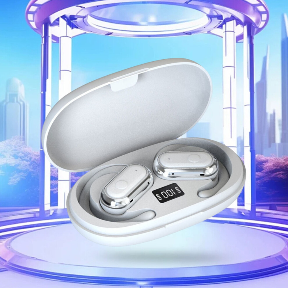 Over The Ear Earbuds, True Wireless Open Ear Bluetooth 5.4, Touch Screen Control, LED Display, IPX5 Waterproof, 8H Playtime, 30H with Case, White