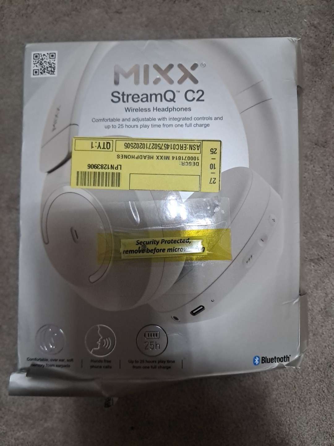 MIXX STREAM Q C2 Wireless Bluetooth Black Headphones Overhead On Ear (5-189)