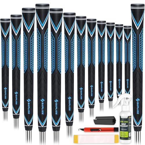 SAPLIZE CC01 Rubber Golf Grips, 13 Grips, 4 Colors Available, Standard/Midsize/Oversize Anti-Slip Rubber Golf Club Grips, 13 Grips with Full Solvent Kit,Blue, Midsize