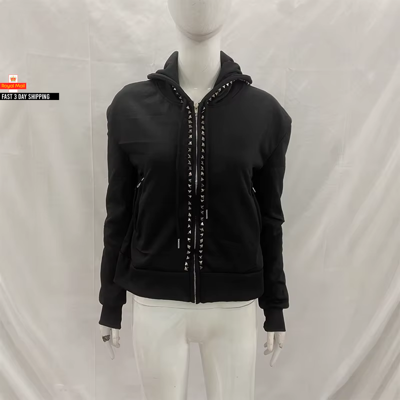 Y2K New Emo Fashion Rivet Zipper Hoodie Women Harajuku Black Oversized Hoodie Go