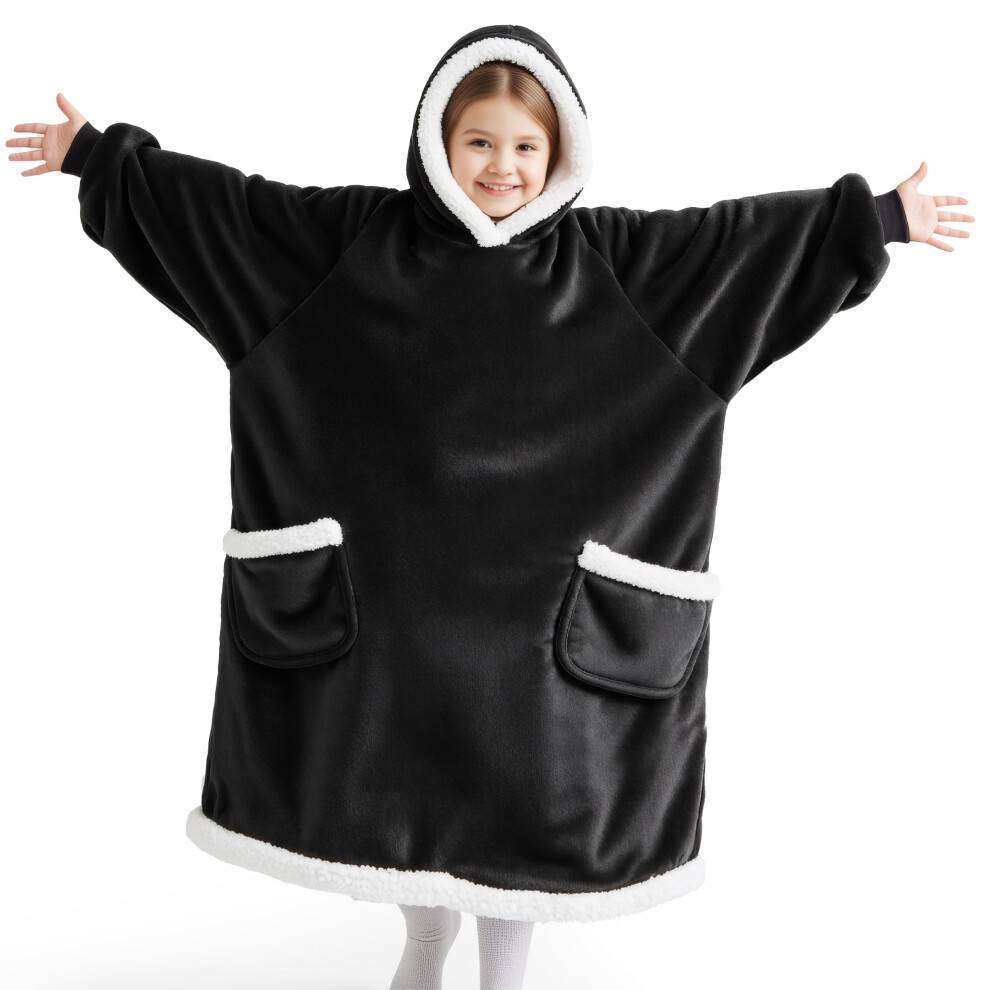 (black) Oversized Hoodie Blanket With Wool Lining Warmth Excellent Warmth